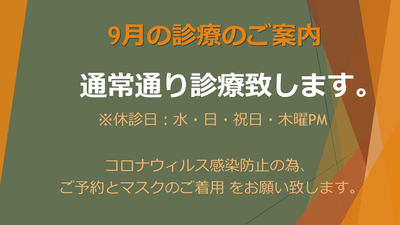 10月3(火)5(木)6(金)は院長井上が喪中の為、臨時休診