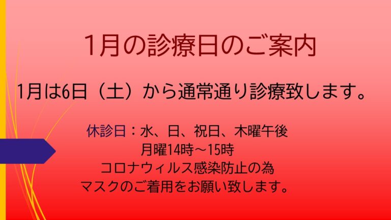 年明けは1月4日からの診療となりますが、午前診療のみとなりますのでご了承下さい。