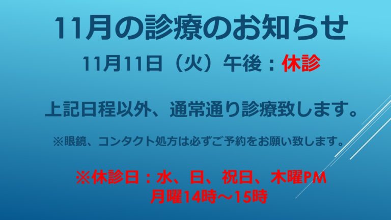 誠に勝手ながら本日11月17日午後の診療を休診とさせていただきます。
