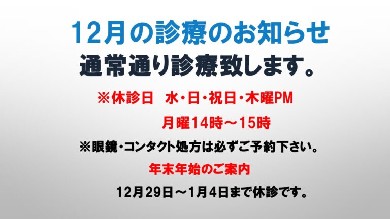 年明けは1月4日からの診療となりますが、午前診療のみとなりますのでご了承下さい。